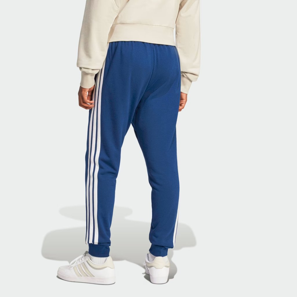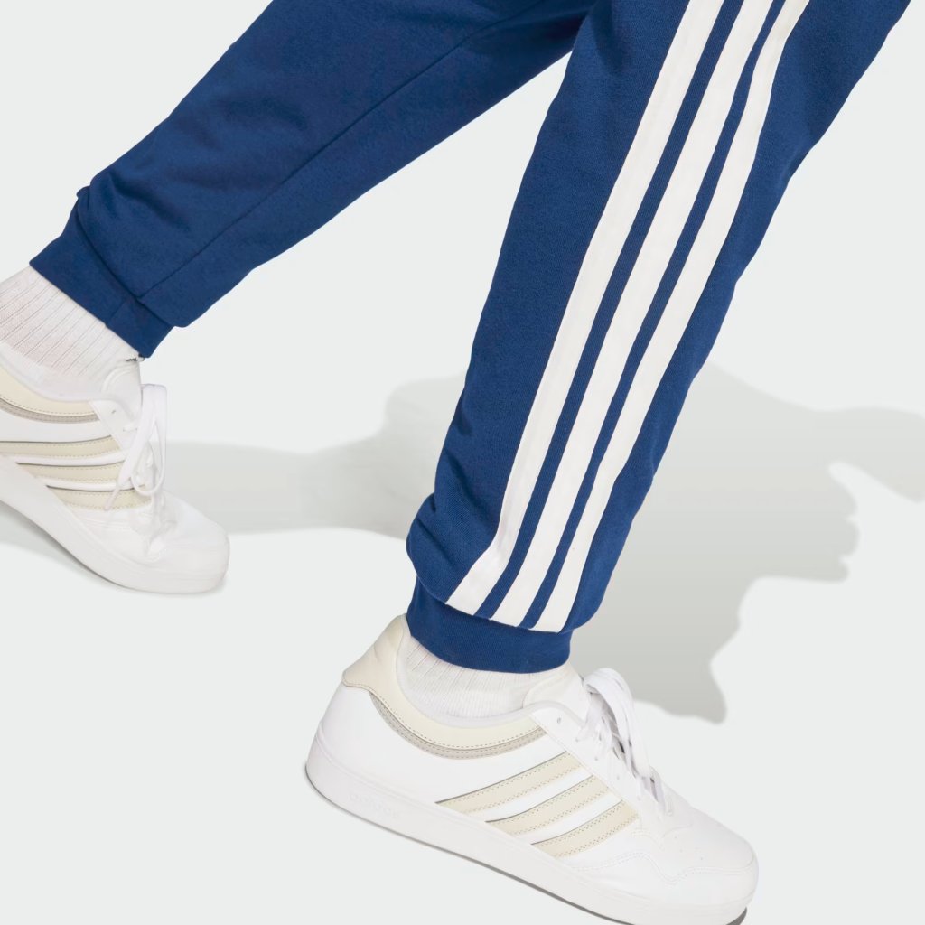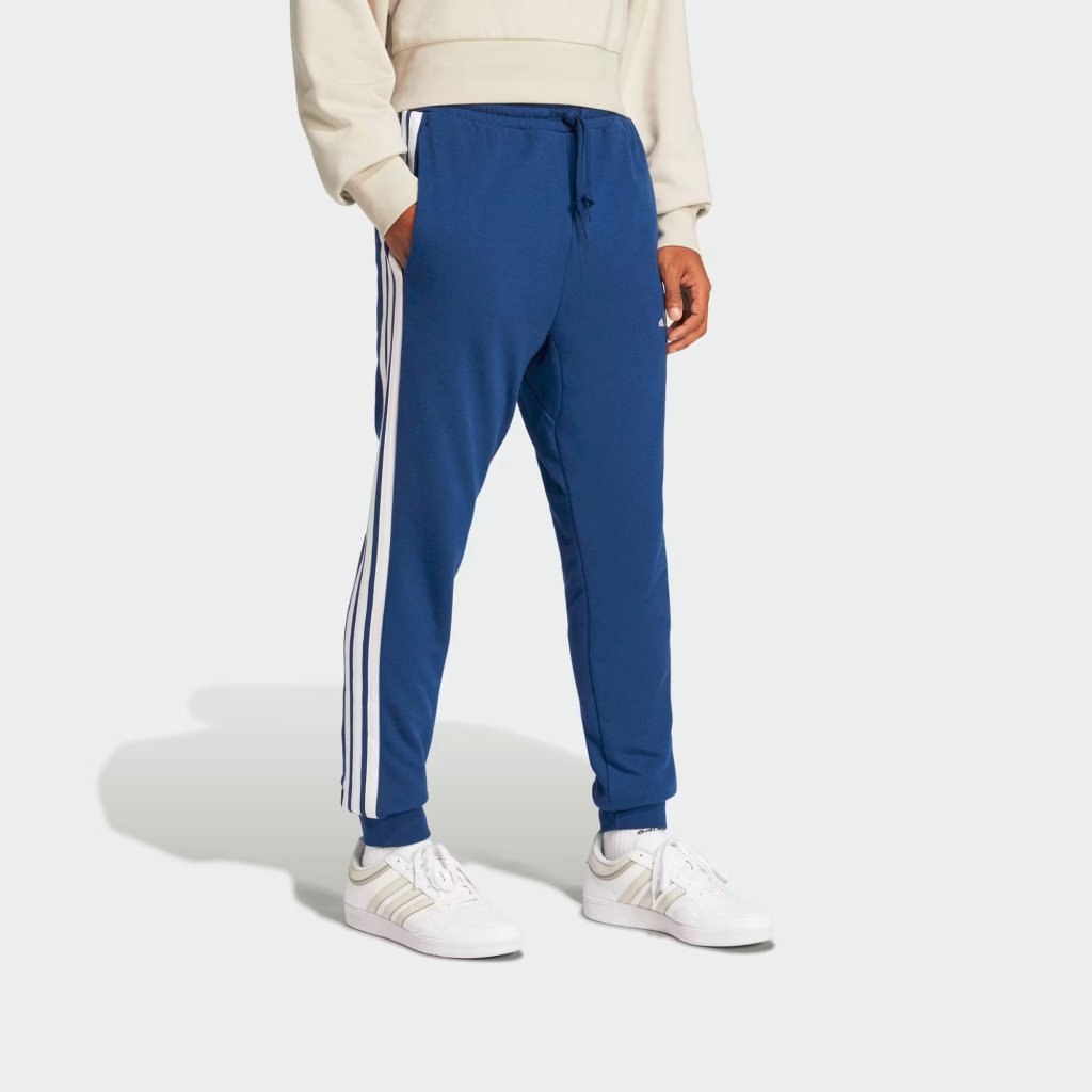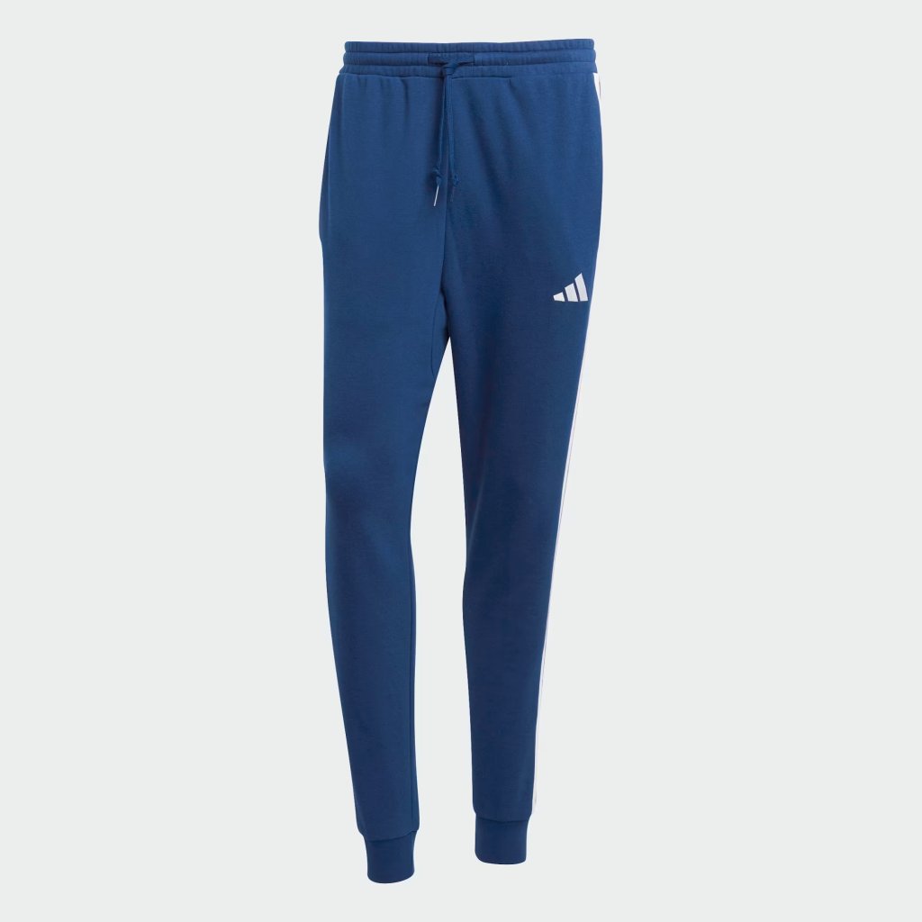 Pánske ležérne tepláky Adidas Essential 3-Stripes French Terry so stredne vysokým pásom vyrobené zo zmesi recyklovaných a obnoviteľných materiálov. Bez ohľadu na to, či leňošíš doma alebo sa chystáš von, tieto tepláky adidas ťa nenechajú v štichu. Sú vyrobené z pohodlného francúzskeho froté a ich športový look dotvárajú 3 prúžky pozdĺž bokov. Majú moderný zúžený strih a sú ideálne na každodenné nosenie.