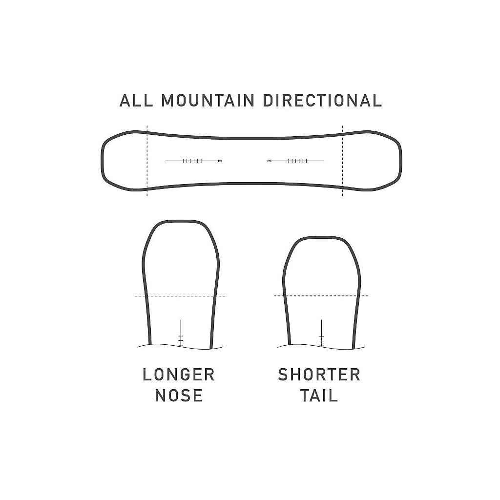 - Shape: Directional - smerový tvar s dlhšou špičkou pre lepšie plávanie v prašane a kratšou pätkou pre stabilitu. Najlepšie funguje pri jazde vpred, ale zvládne aj switch.