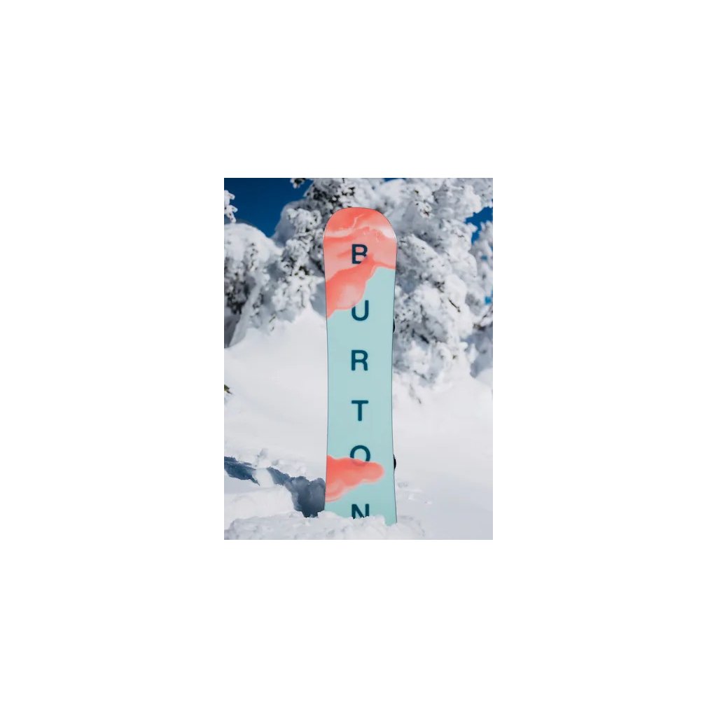 Burton Yeasayer Camber - all-mountain snowboard pre ženy, ktorý kombinuje stabilitu a hravosť so schopnosťou zvládnuť hlboký sneh a parkové prvky. Vďaka prehnutiu Flat Top doska hladko surfuje v prašane a poskytuje stabilný pocit z jazdy. True twin tvar umožňuje pravidelnú jazdu a jazdu na switchoch, zatiaľ čo scoop špička a päta znižujú riziko zachytávania hrán. Jadro Power Core a laminácia špecifická pre ženy poskytujú ideálnu kombináciu popu, výkonu a mäkšieho torzného ohybu pre ľahších jazdcov.