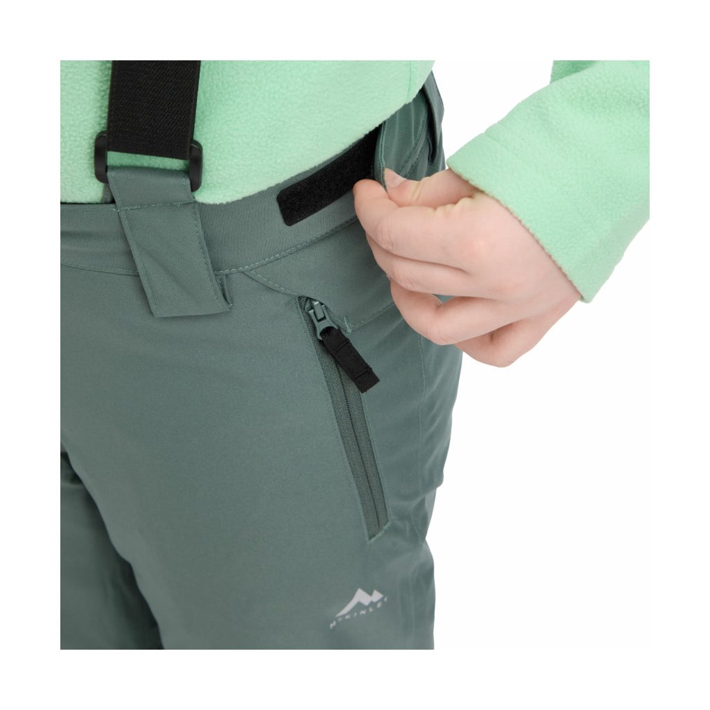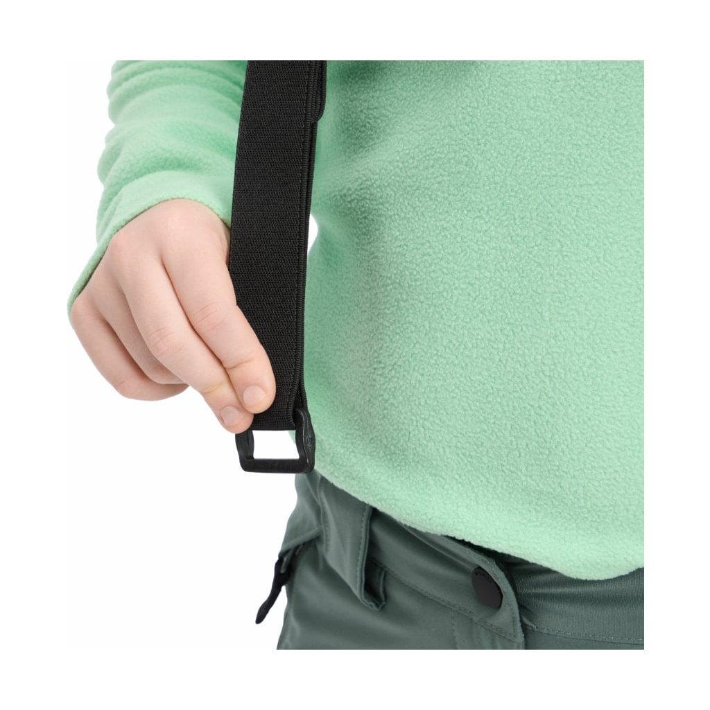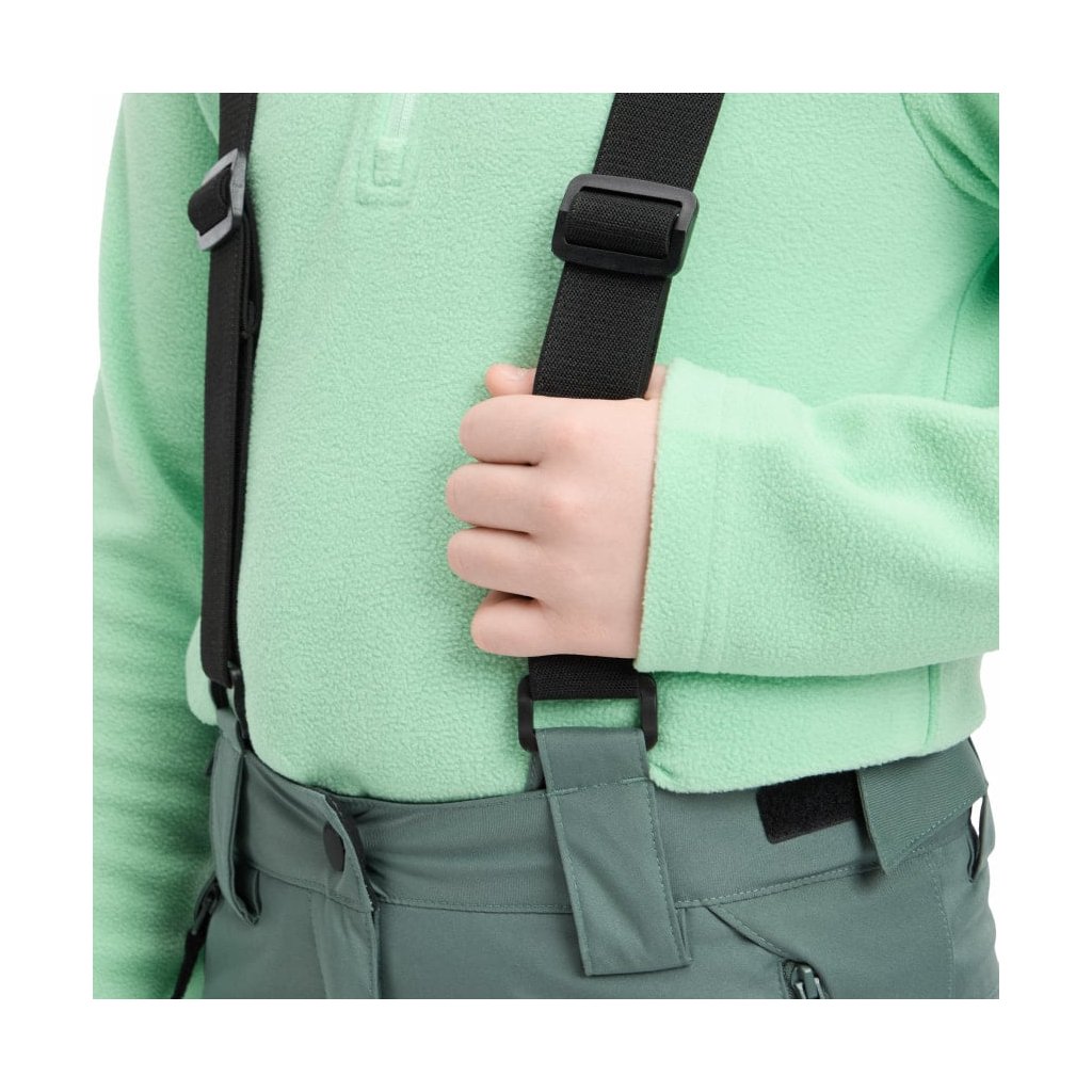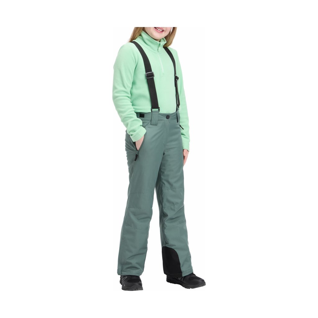 Dievčenské teplé lyžiarske nohavice McKinley Eva Ski Pants Girls sú perfektne vybavené na zábavu na snehu vďaka technológii AQUABASE a podlepeným hlavným švom. Nohavice majú bočné vrecká na zips, predtvarované oblasti kolien a odnímateľné traky. Na konci nôh je ochrana proti hranám lyží a integrovaná snehová zábrana.