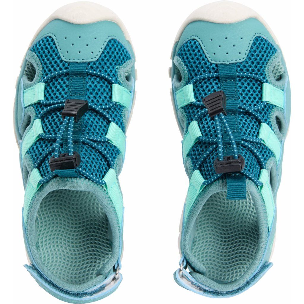 Detské sandále McKinley Nevada ponúkajú mladým dobrodruhom pohodlie a maximálnu slobodu pohybu, či už na turistických chodníkoch alebo pri hraní v parku. Ľahké medzipodrážky z termoplastickej gumy (TPR) poskytujú odpružené kroky, zatiaľ čo polyesterový zvršok umožňuje trvácnu zábavu v prírode. Elastické šnúrky a systém rýchleho šnurovania uľahčujú obúvanie a vyzutie sandálov. Priedušná polyesterová podšívka zaisťuje trvalé pohodlie a odolná podrážka TPR zaručuje vynikajúcu priľnavosť na rôznych povrchoch. Unisex strih ich robí vhodnými pre chlapcov aj dievčatá.