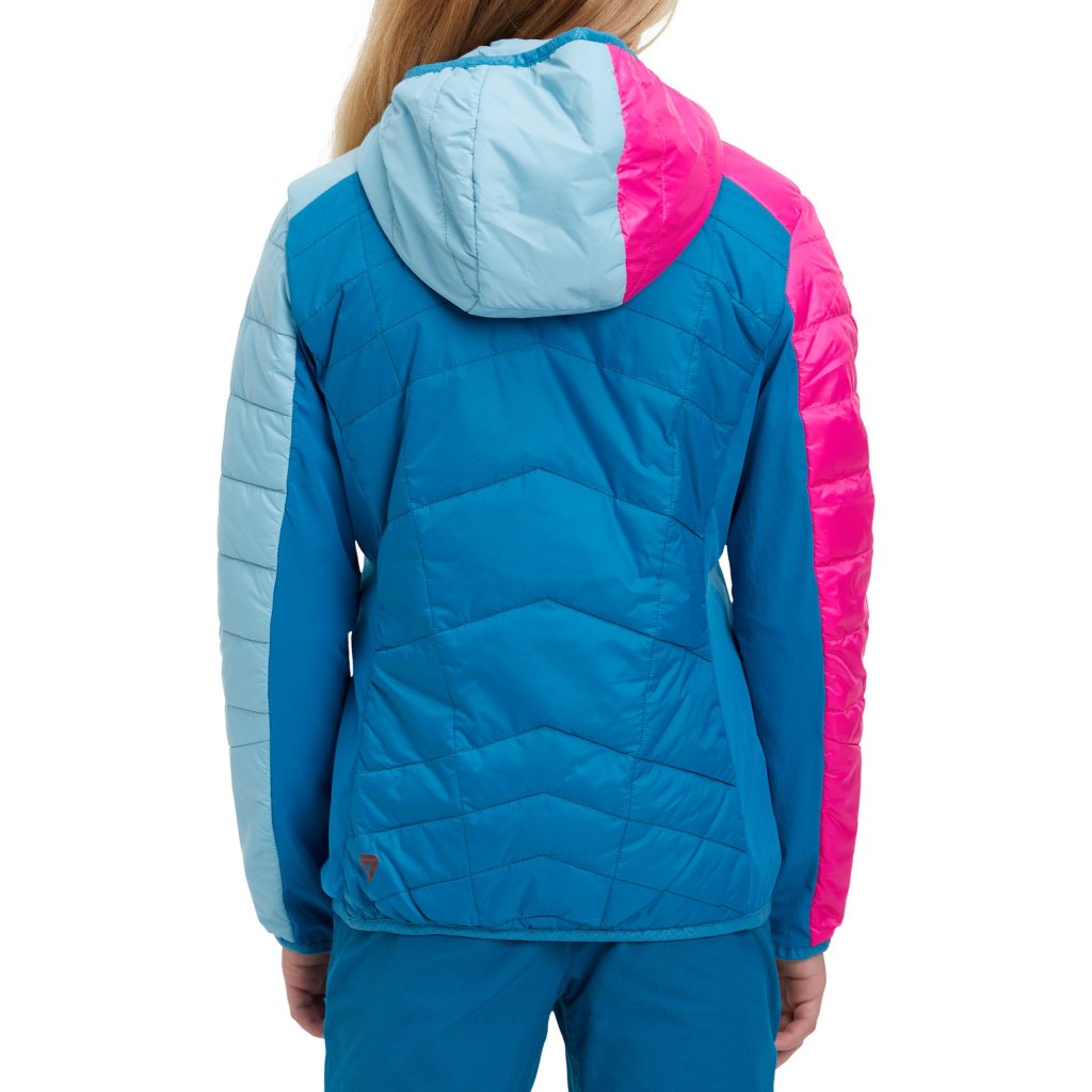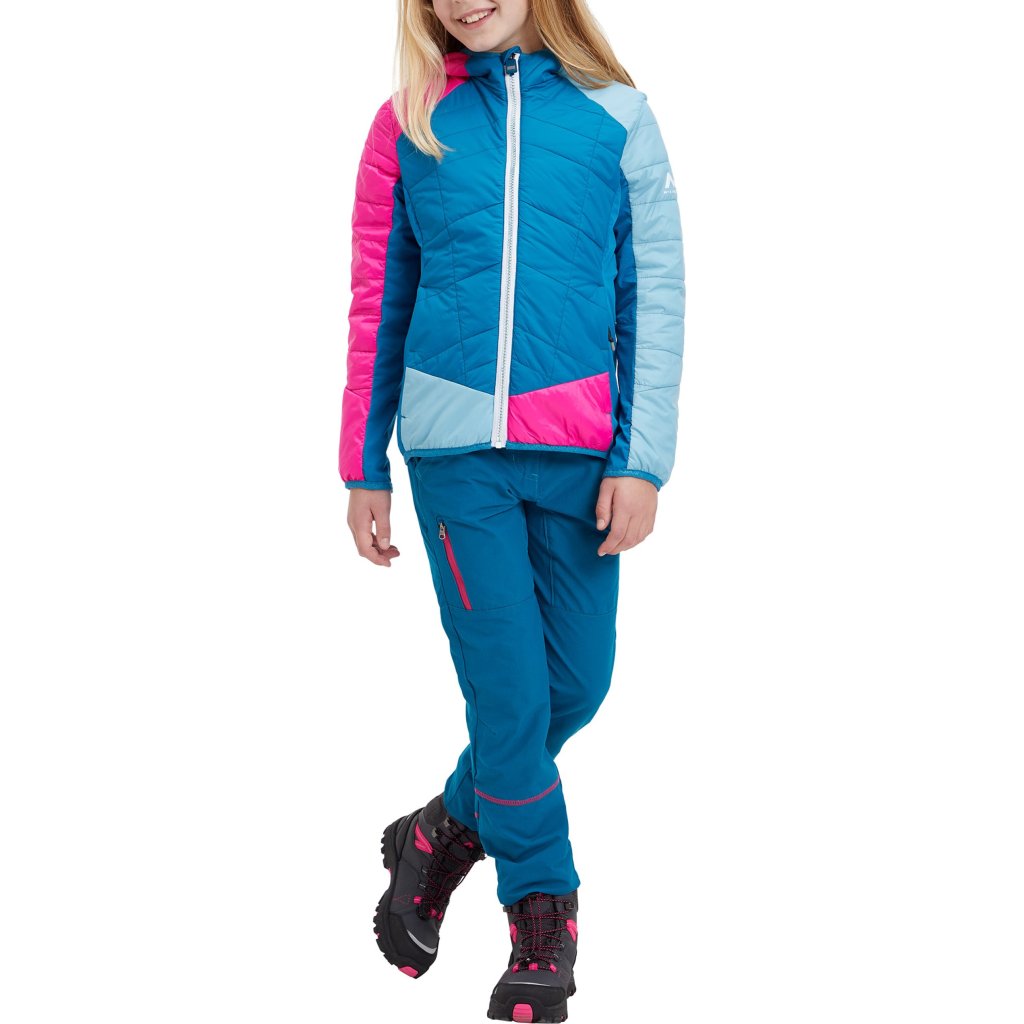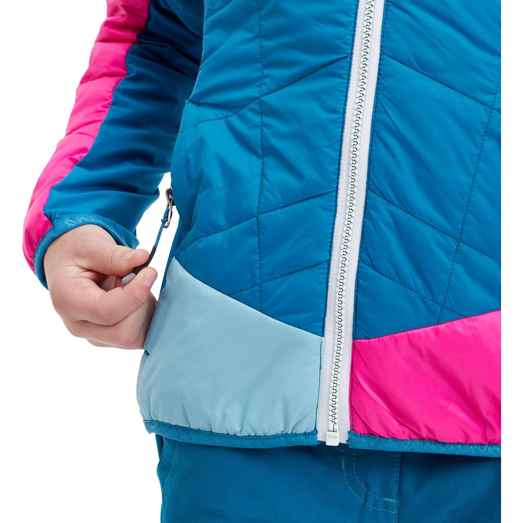 Detská outdoorová bunda Bunda McKinley Sansa Hybrid Jacket Kids je vybavená syntetickou izoláciou Primaloft Silver, ktorá dokonale zadržiava telesné teplo bez pridávania objemu. Má pevnú kapucňu, elastický lem a manžety, vnútro vreciek z česaného tri...