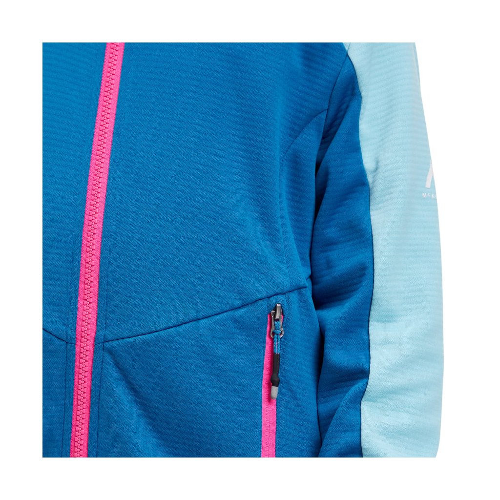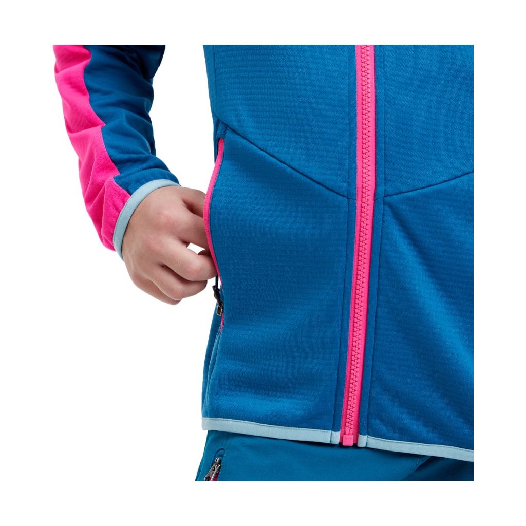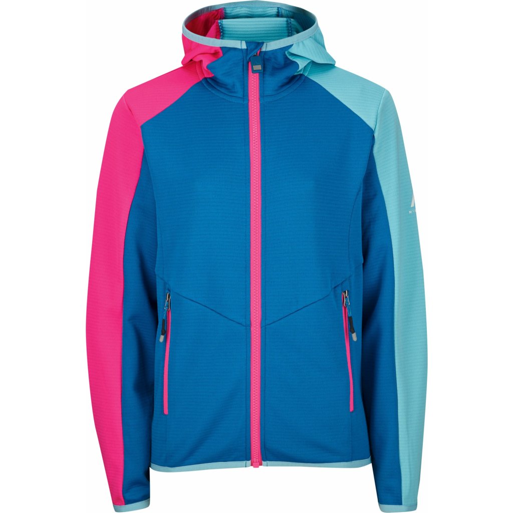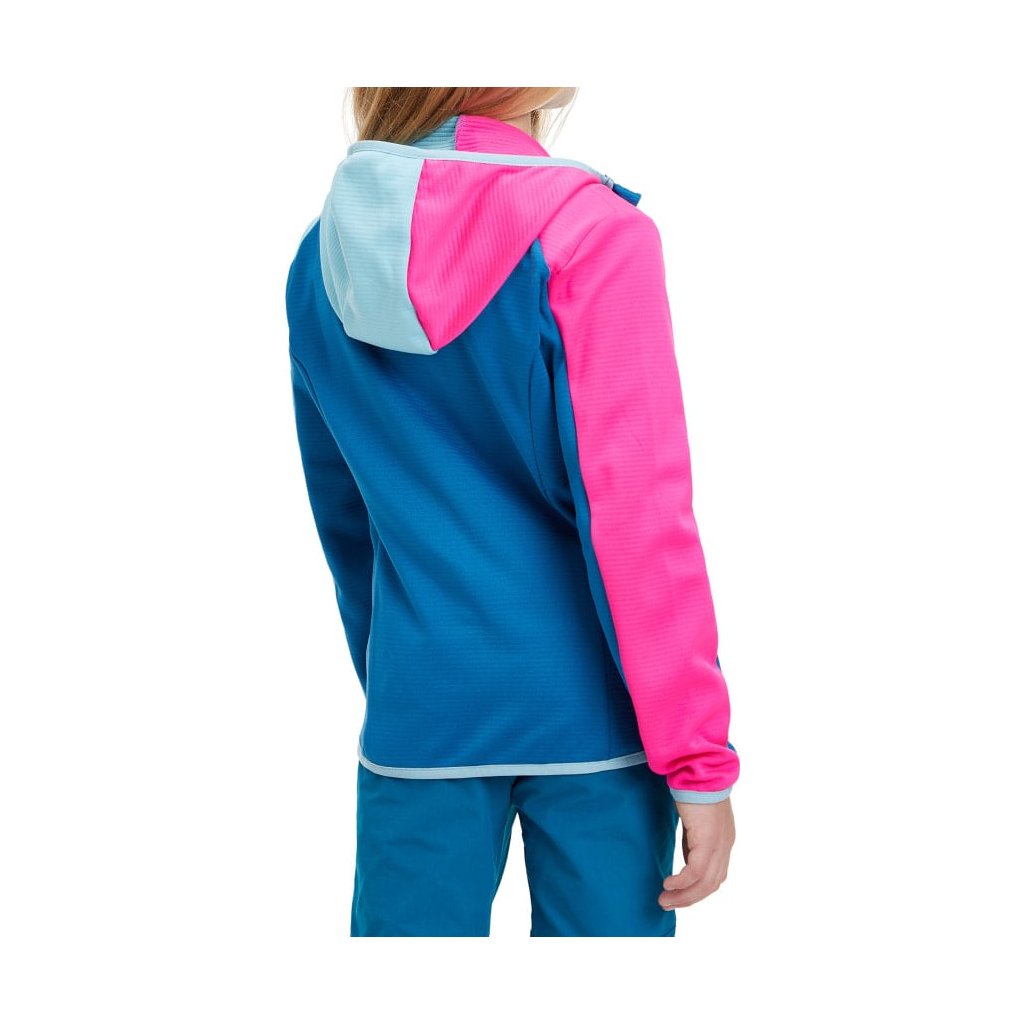 Dievčenská outdoorová mikina McKinley Seth HD Hooded Fleece Jacket Kids je vyrobená z viac ako 50 % recyklovaného polyesteru a má pevnú kapucňu a elastický spodný lem a manžety, ktoré zabraňujú chladu.