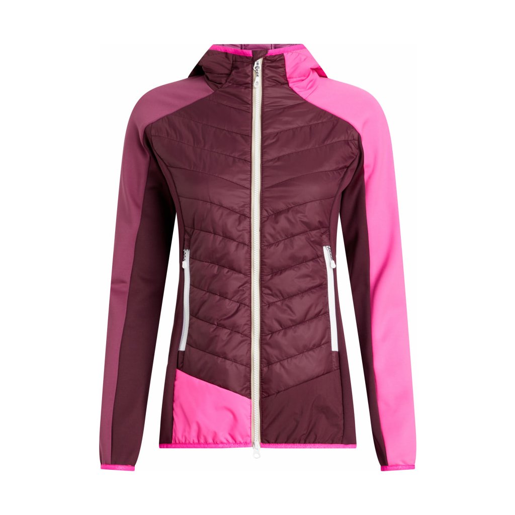 Dámska outdoorová bunda s kapucňou McKinley Sohana Hooded Hybrid Jacket W s prémiovou syntetickou izoláciou Primaloft® Gold, ktorá perfektne izoluje telesné teplo bez toho, aby bola objemná. Má 2-cestný YKK predný zips s ochranou brady, elastický lem a dá sa zložiť do seba pre transport a skladovanie.