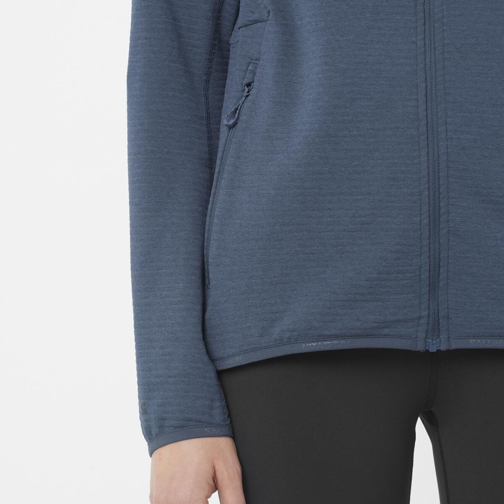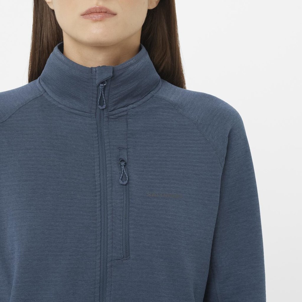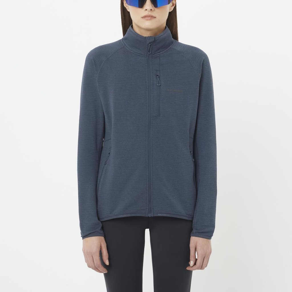 Dámska celozapínacia fleecová mikina Salomon Essential Lightwarm je skvelou strednou vrstvou na všetky zimné aktivity, od turistiky až po lyžovanie. Udrží vás v teple, odvádza vlhkosť a umožňuje cirkuláciu vzduchu, takže sa budete cítiť pohodlne po celý deň. Od hôr cez les až po mesto.