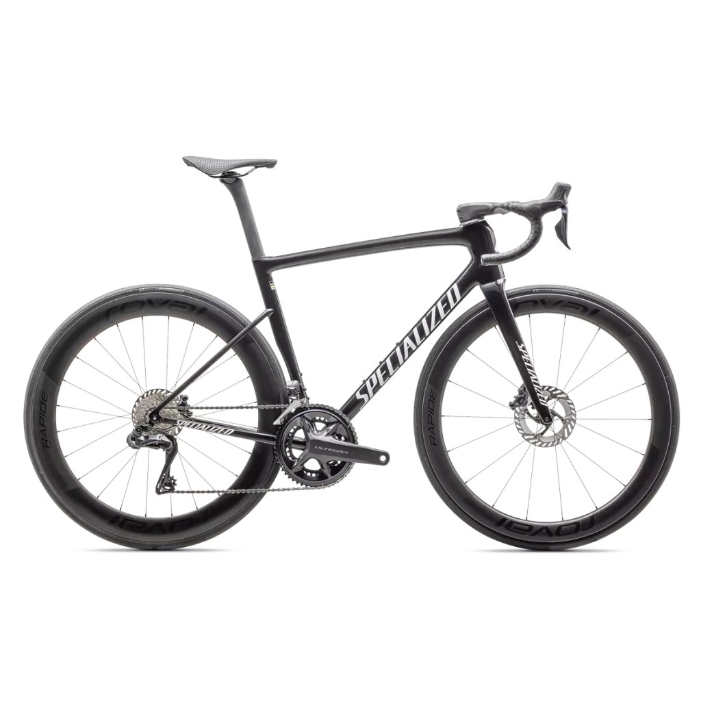 - Predné koleso: Roval Rapide CL II, 21mm internal width carbon rim tubeless ready, Win Tunnel Engineered, DT for Roval 350 hub, DT Swiss Revolution spokes, 51mm depth