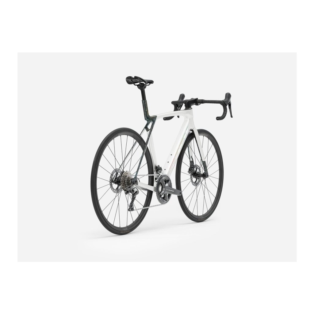 Madone SL 5 Gen 8 je ľahký aerodynamický cestný bicykel, ktorý prináša profesionálne pretekárske technológie do nižšej cenovej kategórie. Ponúka podobné aerodynamické vlastnosti ako drahší model Madone SLR Gen 8, ale s cenovo výhodnejším rámom z vrstveného karbónu OCLV radu 500 a dvojdielnym kokpitom so skrytým vedením káblov. Spoľahlivé a precízne radenie Shimano 105, zliatinové riadidlá a zliatinové kolesá pomáhajú udržať cenu tohto modelu čo najnižšie a zároveň zabezpečujú špičkový výkon.
