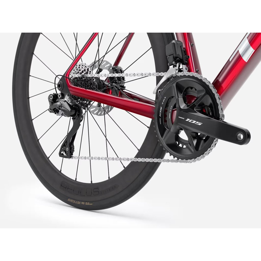 Madone SL 6 Gen 8 je ľahký aerodynamický cestný bicykel, ktorý prináša profesionálne pretekárske technológie príbuzného modelu SLR do nižšej cenovej kategórie s cenovo výhodnejším rámom z vrstveného karbónu OCLV radu 500. Elektronické radenie Shimano 105 Di2 zabezpečuje bleskové zmeny prevodov a spolu so zliatinovými riadidlami pomáha držať cenu čo najnižšie. Okrem toho je vybavený karbónovými kolesami, ktoré zaručujú nízku hmotnosť a špičkový výkon bicykla.