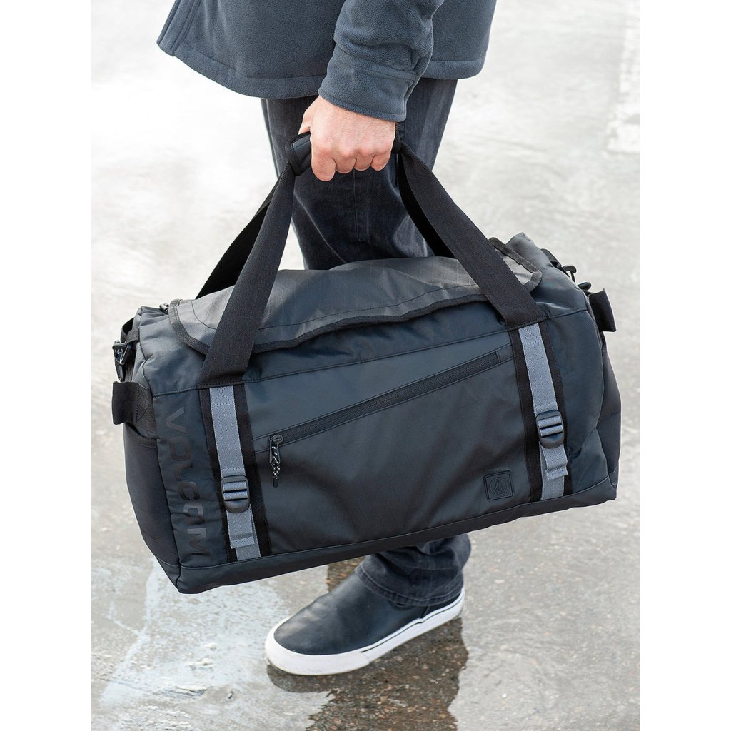 Športová taška s tromi priehradkami, ideálna na uloženie rôznych doplnkov a oblečenia. Je vybavená predným popruhom a nastaviteľnými šnúrkami, ktoréóumožňujú pripnutie ďalších predmetovóna. Taška má predné vrecko na zips a vnútornú organizáciu pre ľahký prístup k potrebným veciam. Hlavný priestor je priestranný a zips je chránený klopou pre väčšiu bezpečnosť. Súčasťou je odnímateľný ramenný popruh a vystužené, látkou potiahnuté dno poskytuje odolnosť a stabilitu. Na taške je vytlačené logo a medzi ďalšie detaily patria pletené štítky a šnúrky pri zipsoch. Taška má rozmery 20” x 12” x 11” (51 cm x 30,5 cm x 28 cm) a objem 43 litrov