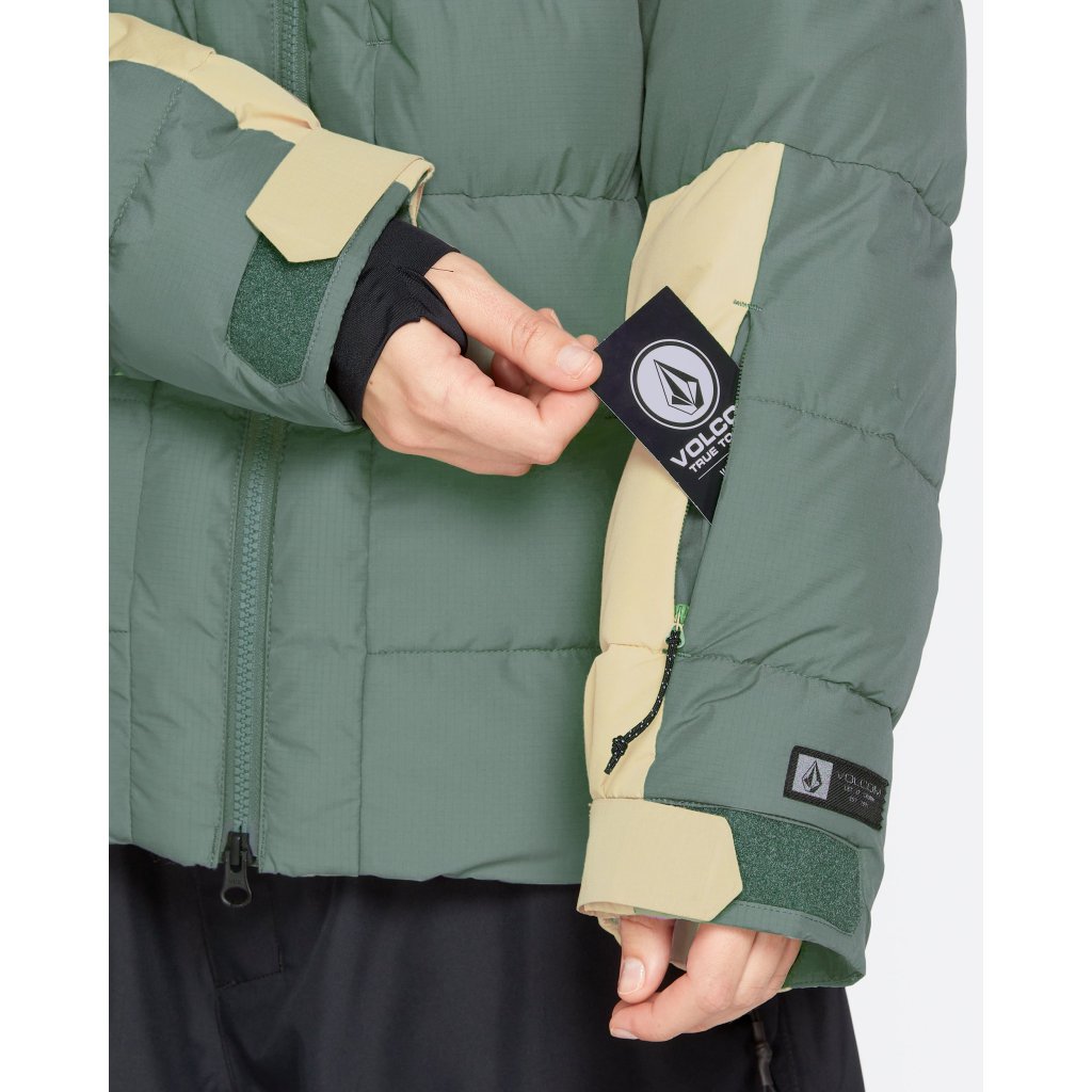 Poriadna zima vyžaduje poriadnu bundu. A keď fičíš z kopca na doske, tak to platí dvojnásobne. Snowboardová bunda Volcom Puffleup je ušitá z odolného vrchného materiálu s vodoodpudivou úpravou DWR, ktorá ochráni výplň pred navlhnutím. Bohatá izolácia z ekologickej výplne Thermore Ecodown 600+ ti poskytne nekompromisné zateplenie, takže môžeš zabudnúť na chlad a nepohodlie. A keď si náročný pohyb žiada reguláciu tepla, využiješ vetracie otvory v podpazuší. Nechýba ani poriadna kapucňa, snow-catcher a niekoľko šikovných vreciek, vďaka ktorým budeš mať vždy to najdôležitejšie po ruke.
