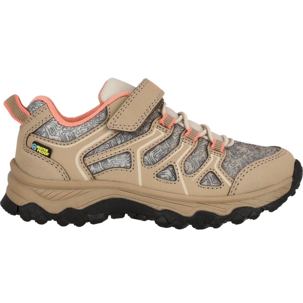 Topánka má ľahký zvršok z polyuretánu a sieťoviny, stielku z EVA a textilu a podrážku z termoplastickej gumy. Aby sa aktívne deti cítili pohodlne aj pri väčšom pohybe, topánka je priedušná a má dodatočné polstrovanie v oblasti päty. Zosilnené prvky na špičke tiež ponúkajú ešte väčšiu ochranu. Profil vhodný do každého počasia zaisťuje bezpečný krok a šikovný suchý zips uľahčuje obúvanie a vyzuvanie. Táto štýlová obuv, vhodná pre deti, je nevyhnutnosťou pre outdoorové aktivity s deťmi – alebo na každodenné nosenie!