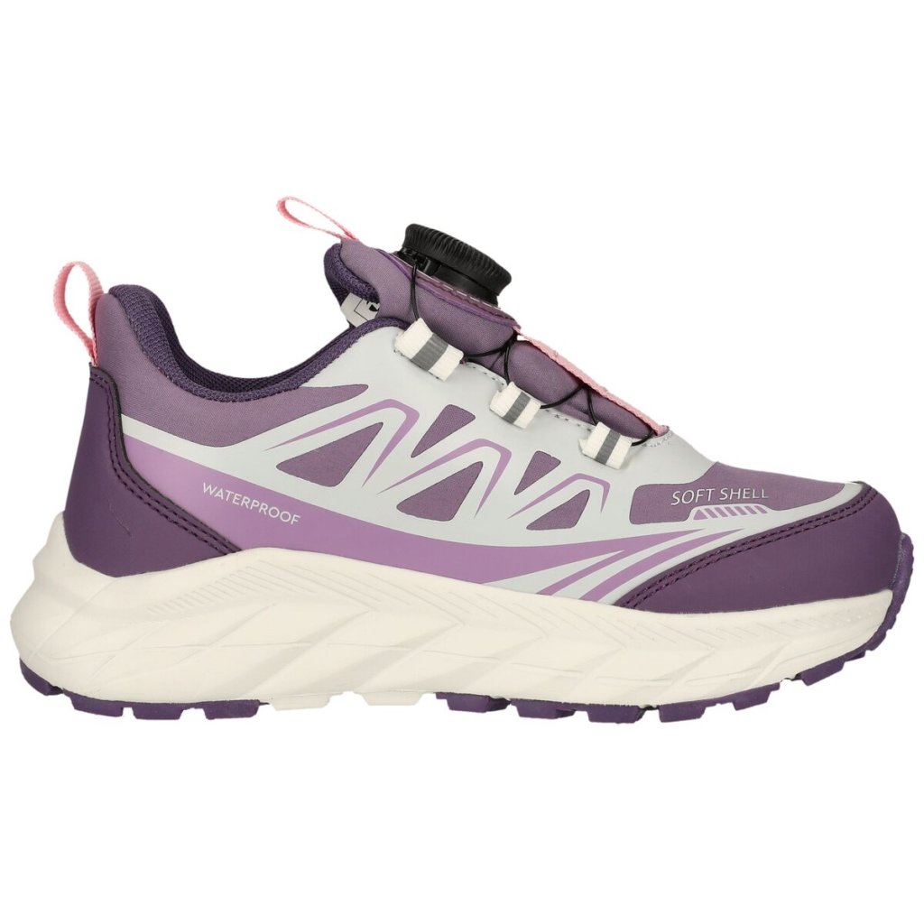 Zvršok je vyrobený z odolného softshellového materiálu s nepremokavou membránou, ktorá pomáha udržiavať nohy v suchu aj v meniacom sa počasí. Praktický systém zapínania Q-lock uľahčuje deťom obúvanie a vyzuvanie topánok a zároveň zaisťuje pevné a stabilné nosenie. Ľahká a nárazy tlmiaca podrážka poskytuje dobrú oporu a bezpečný úchop na povrchu, takže sa dieťa môže bezpečne pohybovať celý deň.